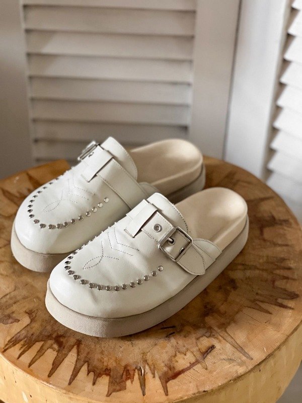 Los Prune son la combinación perfecta entre comodidad y tendencia. Inspirados en el clásico estilo Birkenstock, están confeccionados en 100% cuero vacuno y cuentan con detalles que los hacen únicos: hebilla lateral metálica y apliques de tachas en el frente.