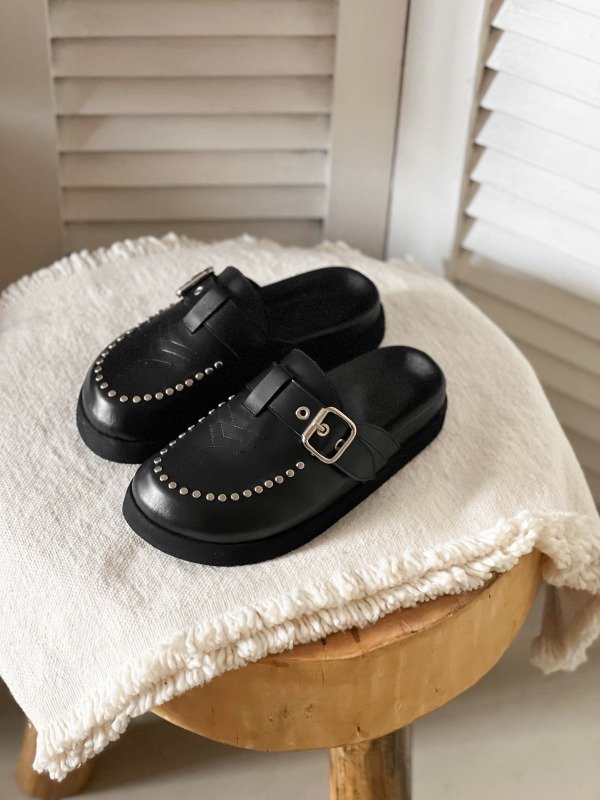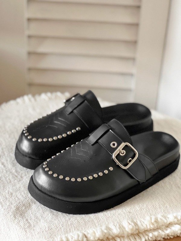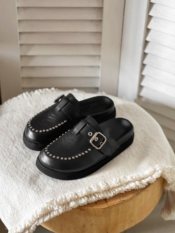 Los Prune son la combinación perfecta entre comodidad y tendencia. Inspirados en el clásico estilo Birkenstock, están confeccionados en 100% cuero vacuno y cuentan con detalles que los hacen únicos: hebilla lateral metálica y apliques de tachas en el frente.